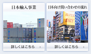 貿易事業 各種商品の輸出入及び販売、並びに輸出入業務代理 日中両国におけるコンサルティング業務、企業設立の補助及び商務視察、文化交流等の業務